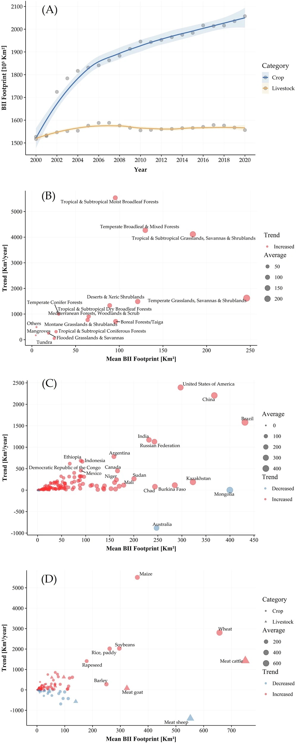 Global biodiversity is rapidly declining, primarily due to agricultural production driven by both domestic and transboundary consumption. This study addresses the challenges posed by inconsistent spatiotemporal biodiversity data by developing a time series of biodiversity loss footprints based on Biodiversity Intactness Index (BII). Numerous land use, land cover, and auxiliary datasets were integrated to produce a consistent time series of high-resolution harmonized land use (HHLU) maps. These maps were utilized to quantify spatial BII using linear-mixed effect models. Biodiversity intactness loss (BII footprint) was subsequently attributed to specific crops and livestock commodities. This study provides comprehensive global datasets, including HHLU and BII maps, and synthesized BII footprints across 14 biomes, 193 countries and territories, 154 crop items, and 9 livestock categories from 2000 to 2020. These datasets facilitate spatiotemporal analyses to identify trends and patterns in global biodiversity integrity and biodiversity footprints, thereby elucidating the ecological trade-offs embedded in international trade. These insights can encourage appropriate interventions to transform consumption patterns and supply chains toward the effective conservation of global biodiversity.
